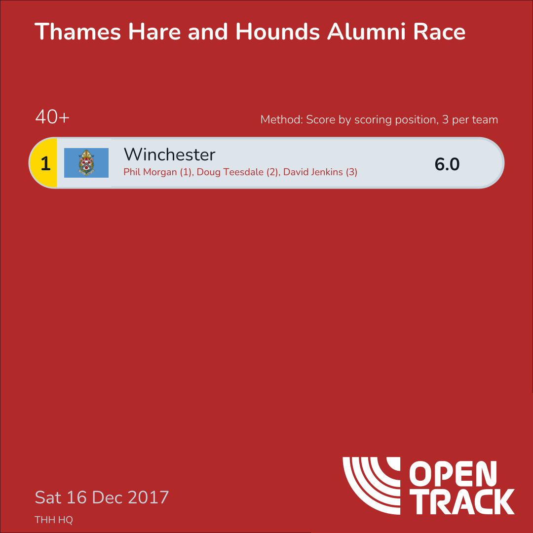 6.0 | 82: Phil Morgan (1), 133: Doug Teesdale (2), 252: David Jenkins (3) |