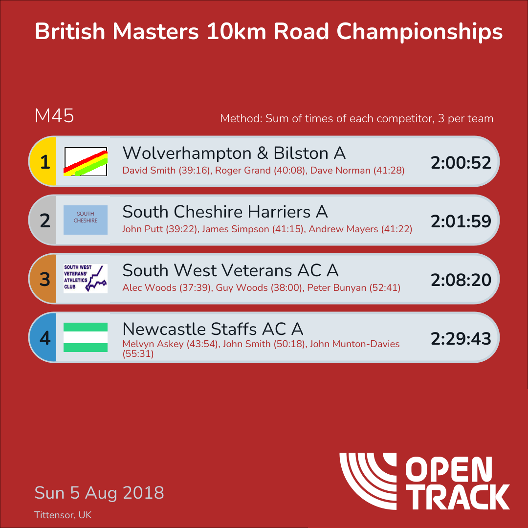 | 4 | - | Andrew Grant | M45 |