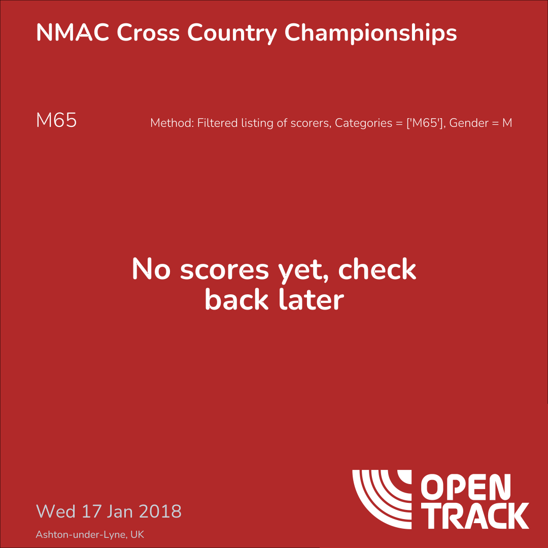Method: Filtered listing of scorers, Categories = ['M65'], Gender = M
