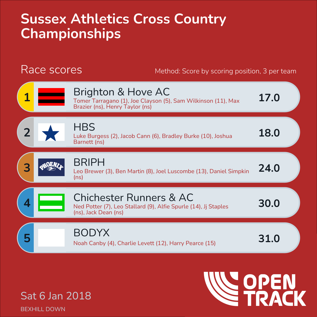31.0 | 6: Noah Canby (4), 17: Charlie Levett (12), 21: Harry Pearce (15) |