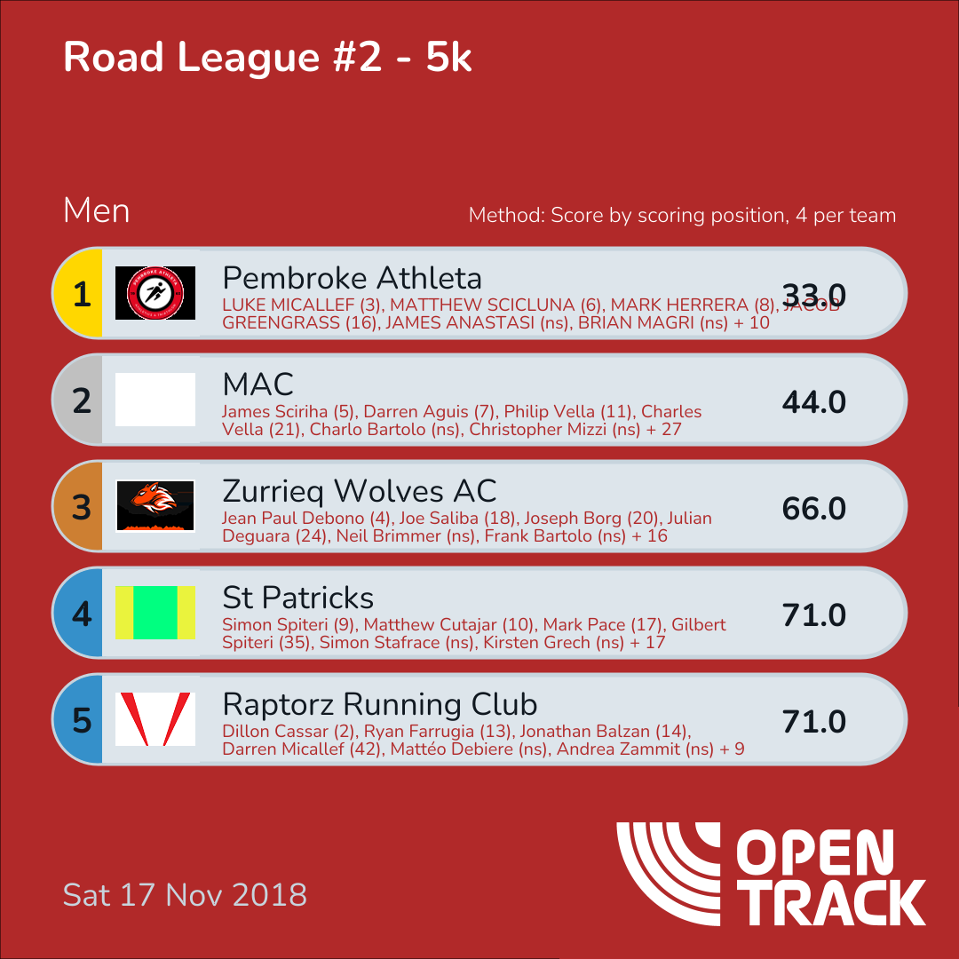 | 7 | ASL | 117.0 | 20: Gerald Grech (20), 24: Jake Fenech (22), 35: Kristian Balzan (28), 113: Ryan Paul Tonna (47) | |