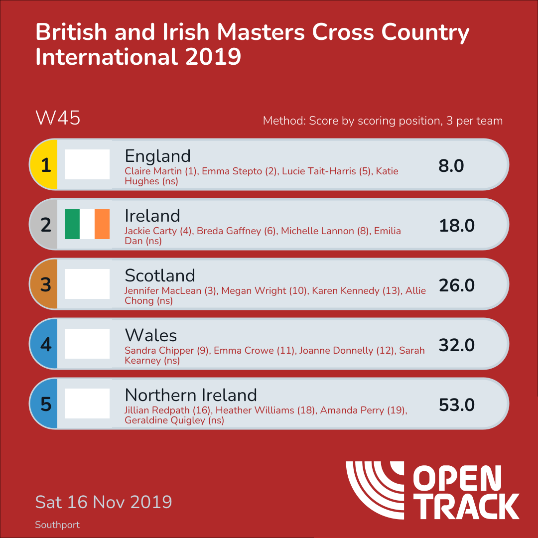 32.0 | 38: Sandra Chipper (9), 42: Emma Crowe (11), 51: Joanne Donnelly (12) | |