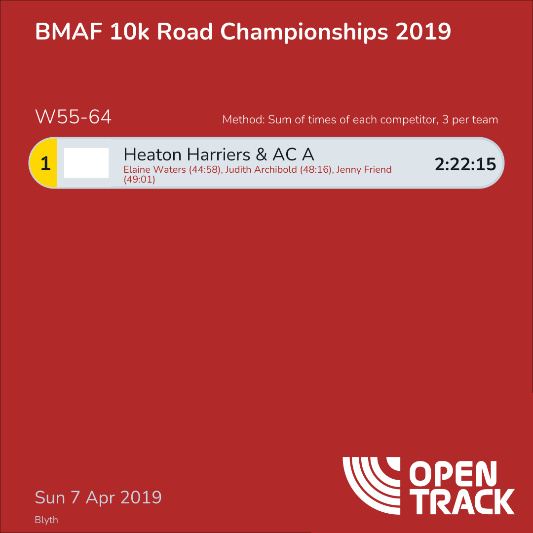 2:22:15 | 115: Elaine Waters (44:58), 132: Judith Archibold (48:16), 133: Jenny Friend (49:01) |