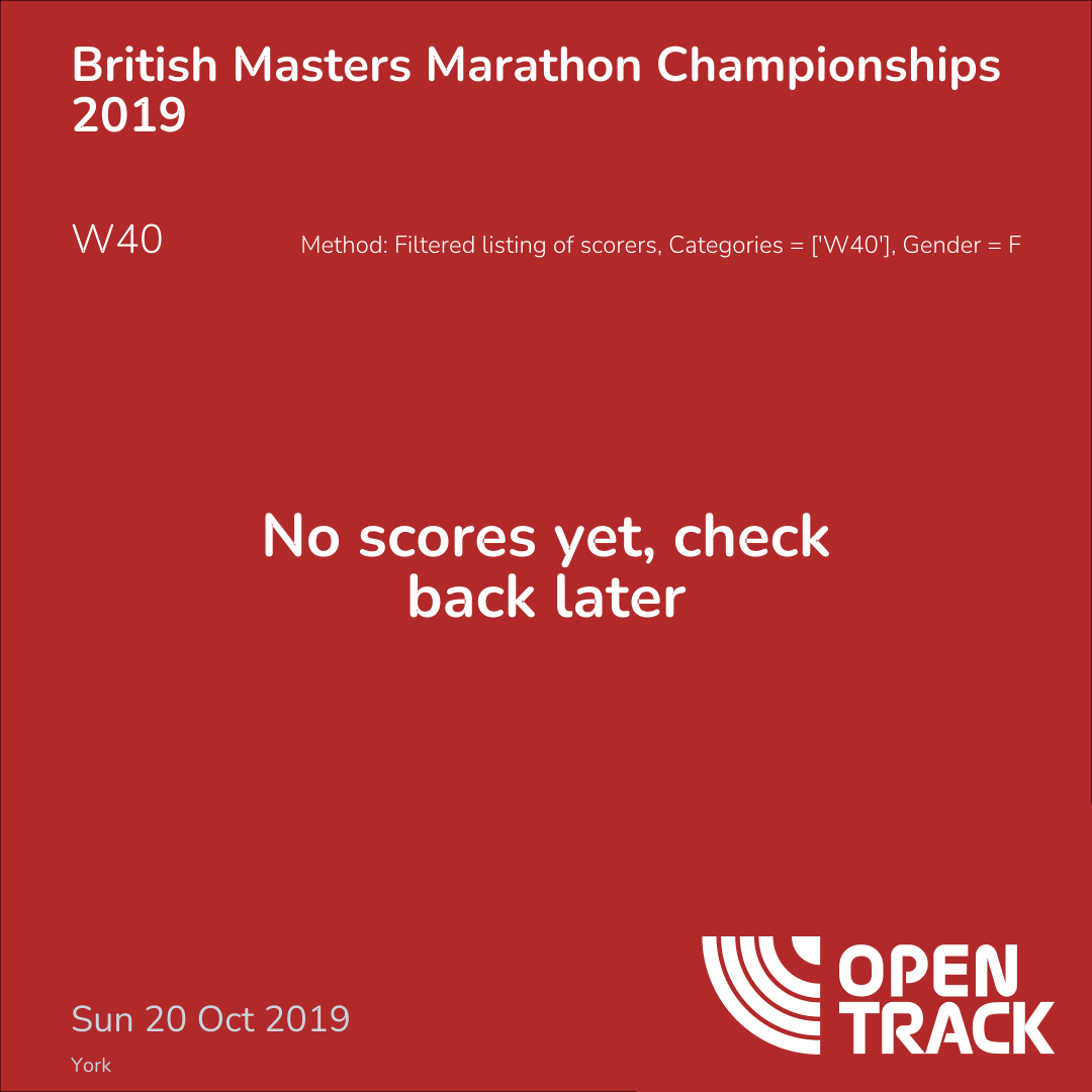 Method: Filtered listing of scorers, Categories = ['W40'], Gender = F