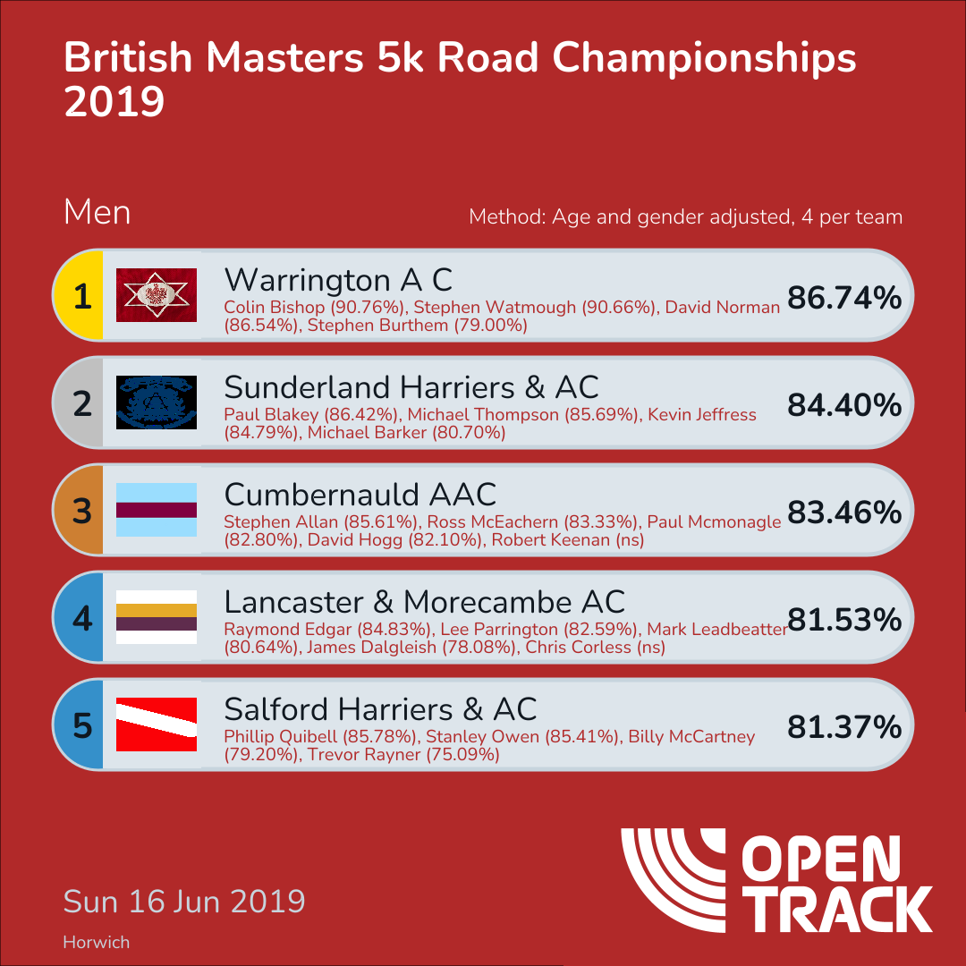 | Place | Points | Name | Category | Team | Performance | Age Grade |