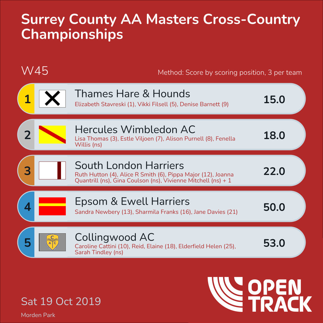 15.0 | 6: Elizabeth Stavreski (1), 26: Vikki Filsell (5), 44: Denise Barnett (9) | |