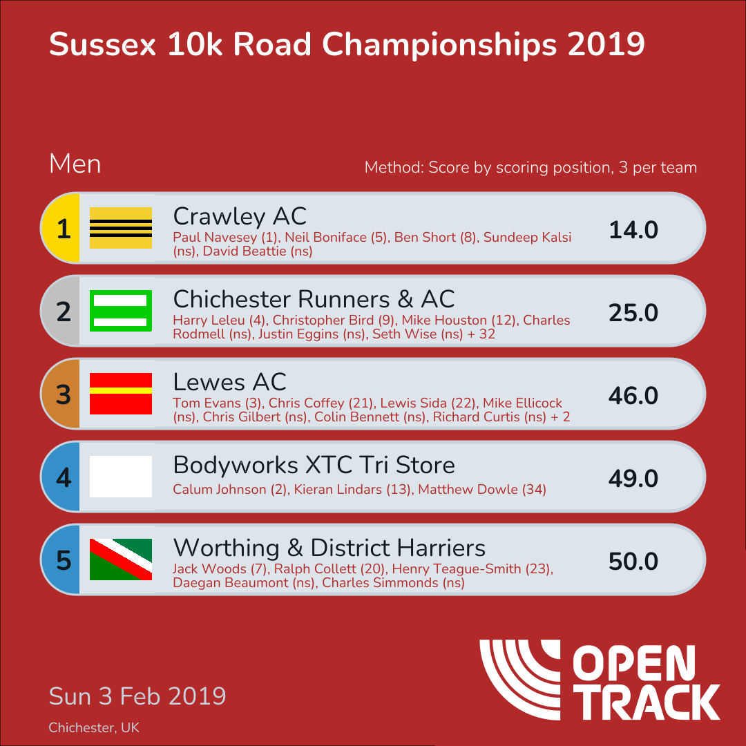 50.0 | 7: Jack Woods (7), 20: Ralph Collett (20), 25: Henry Teague-Smith (23) | |