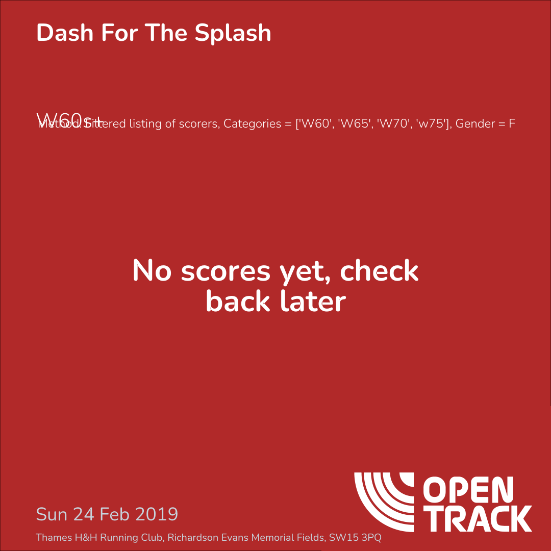 Method: Filtered listing of scorers, Categories = ['W60', 'W65', 'W70', 'w75'], Gender = F