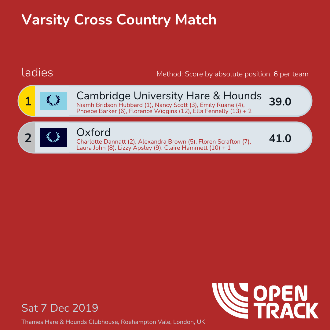 39.0 | 1: Niamh Bridson Hubbard (1), 3: Nancy Scott (3), 4: Emily Ruane (4), 6: Phoebe Barker (6), 12: Florence Wiggins (12), 13: Ella Fennelly (13) | |