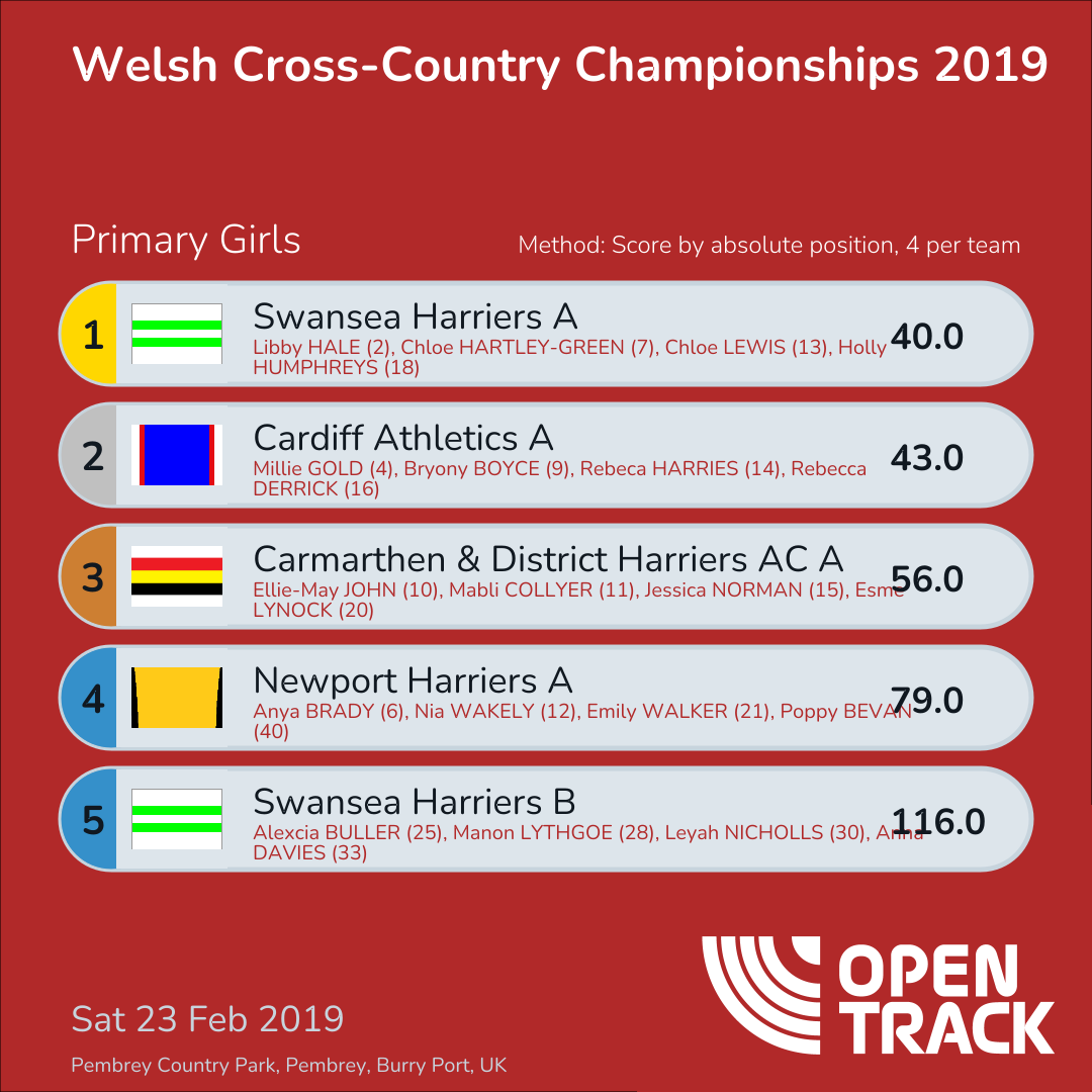 56.0 | 10: Ellie-May JOHN (10), 11: Mabli COLLYER (11), 15: Jessica NORMAN (15), 20: Esme LYNOCK (20) | |