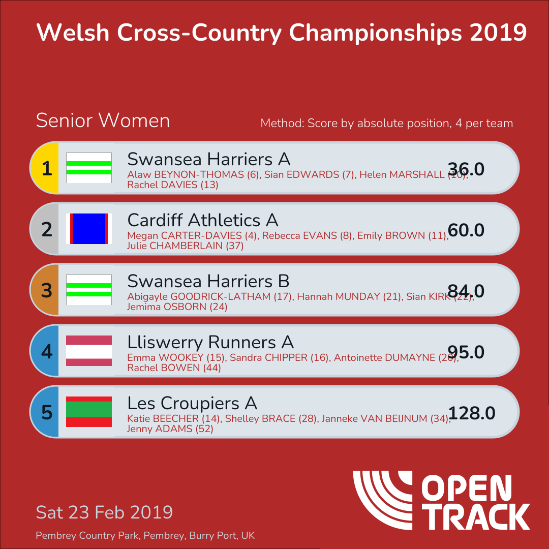 60.0 | 4: Megan CARTER-DAVIES (4), 8: Rebecca EVANS (8), 11: Emily BROWN (11), 37: Julie CHAMBERLAIN (37) | |