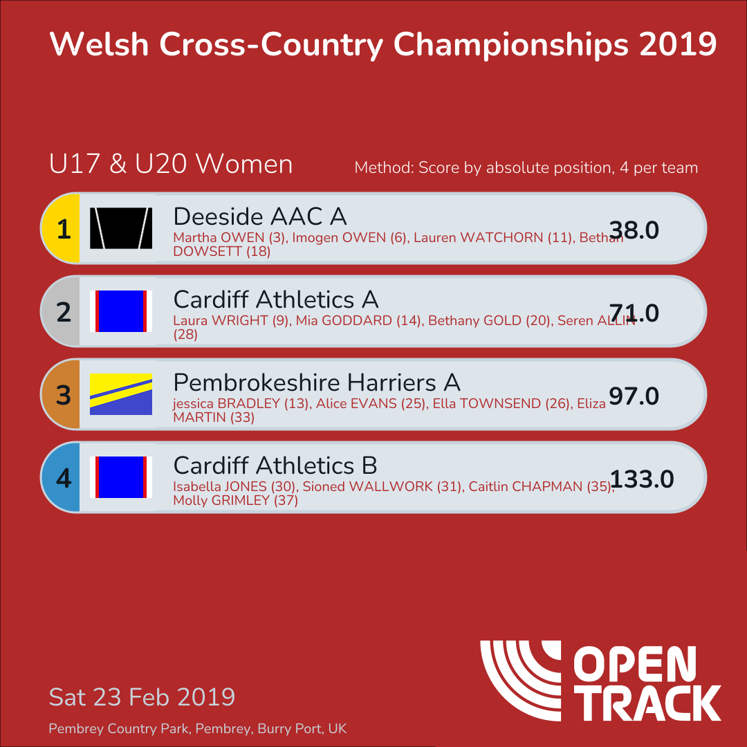 38.0 | 3: Martha OWEN (3), 6: Imogen OWEN (6), 11: Lauren WATCHORN (11), 18: Bethan DOWSETT (18) | |