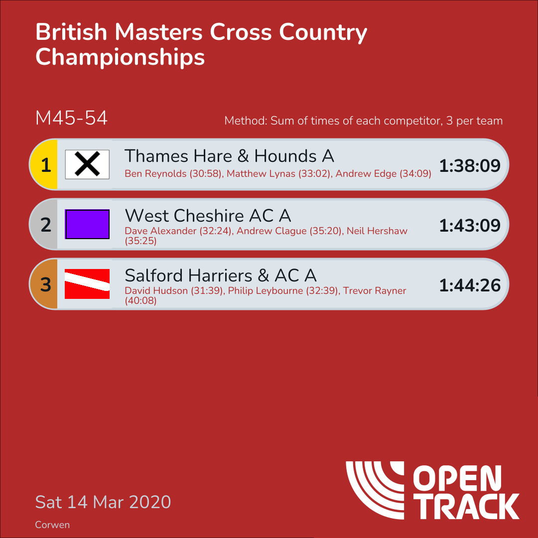 1:38:09 | 13: Ben Reynolds (30:58), 36: Matthew Lynas (33:02), 45: Andrew Edge (34:09) | |