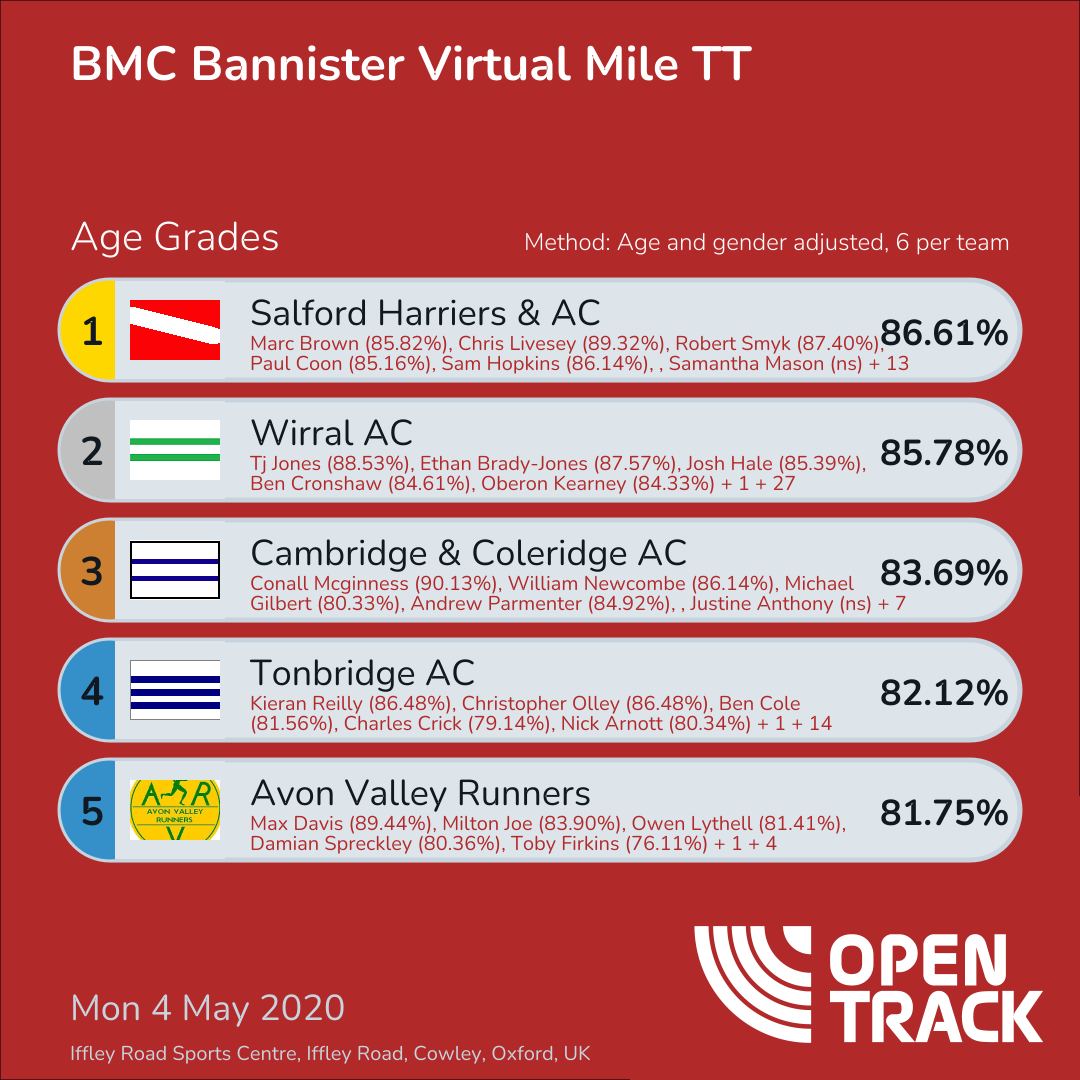 | 3 | CAMCO | 83.69% | 15: Conall Mcginness (90.13%), 68: William Newcombe (86.14%), 90: Michael Gilbert (80.33%), 138: Andrew Parmenter (84.92%), 296: Lewis Buchallet (80.47%), 360: Matthew Smith (80.15%) | |