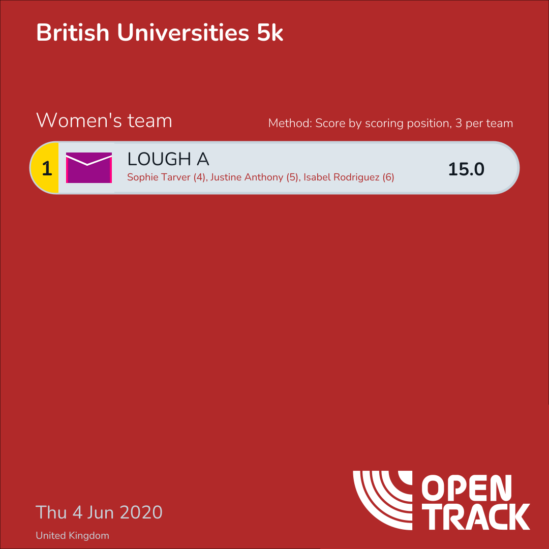 15.0 | 4: Sophie Tarver (4), 5: Justine Anthony (5), 6: Isabel Rodriguez (6) |