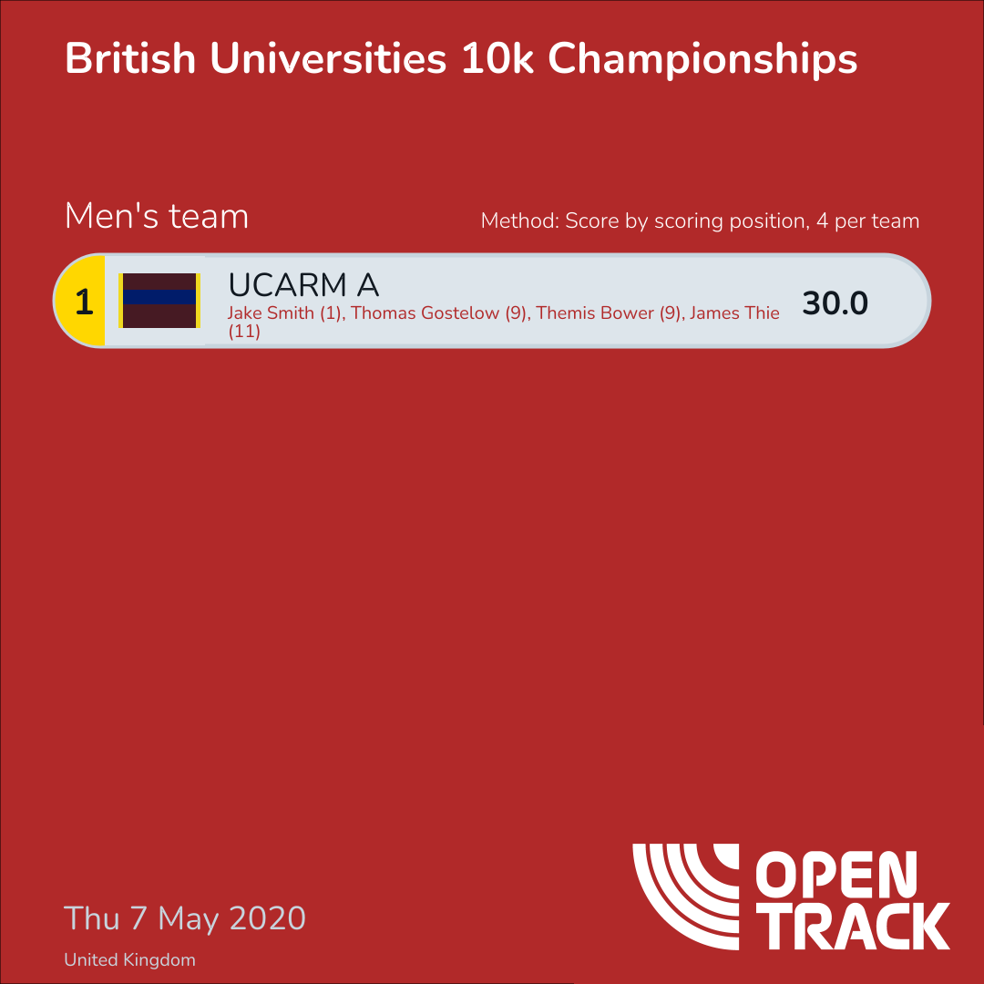 30.0 | 1: Jake Smith (1), 8: Thomas Gostelow (9), 8: Themis Bower (9), 11: James Thie (11) |