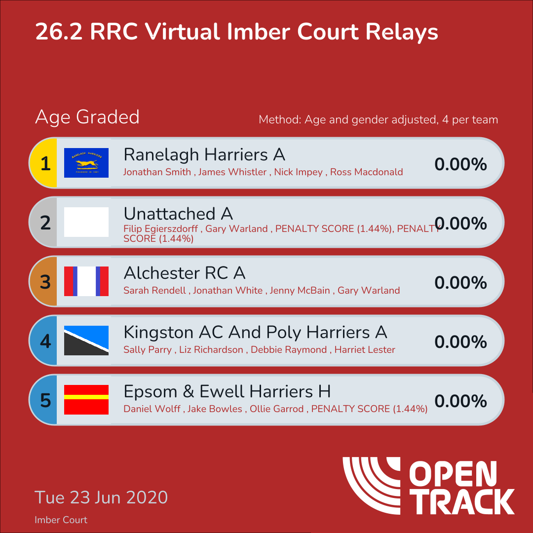 | Place | Points | Name | Category | Team | Performance | Age Grade |