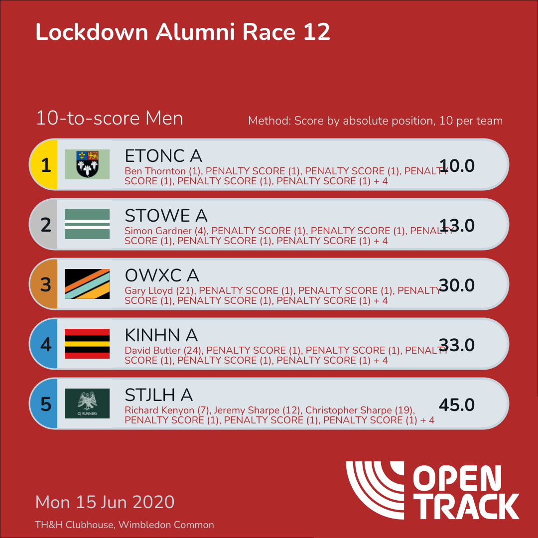 | 12 | 12 | Jeremy Sharpe | M45 |