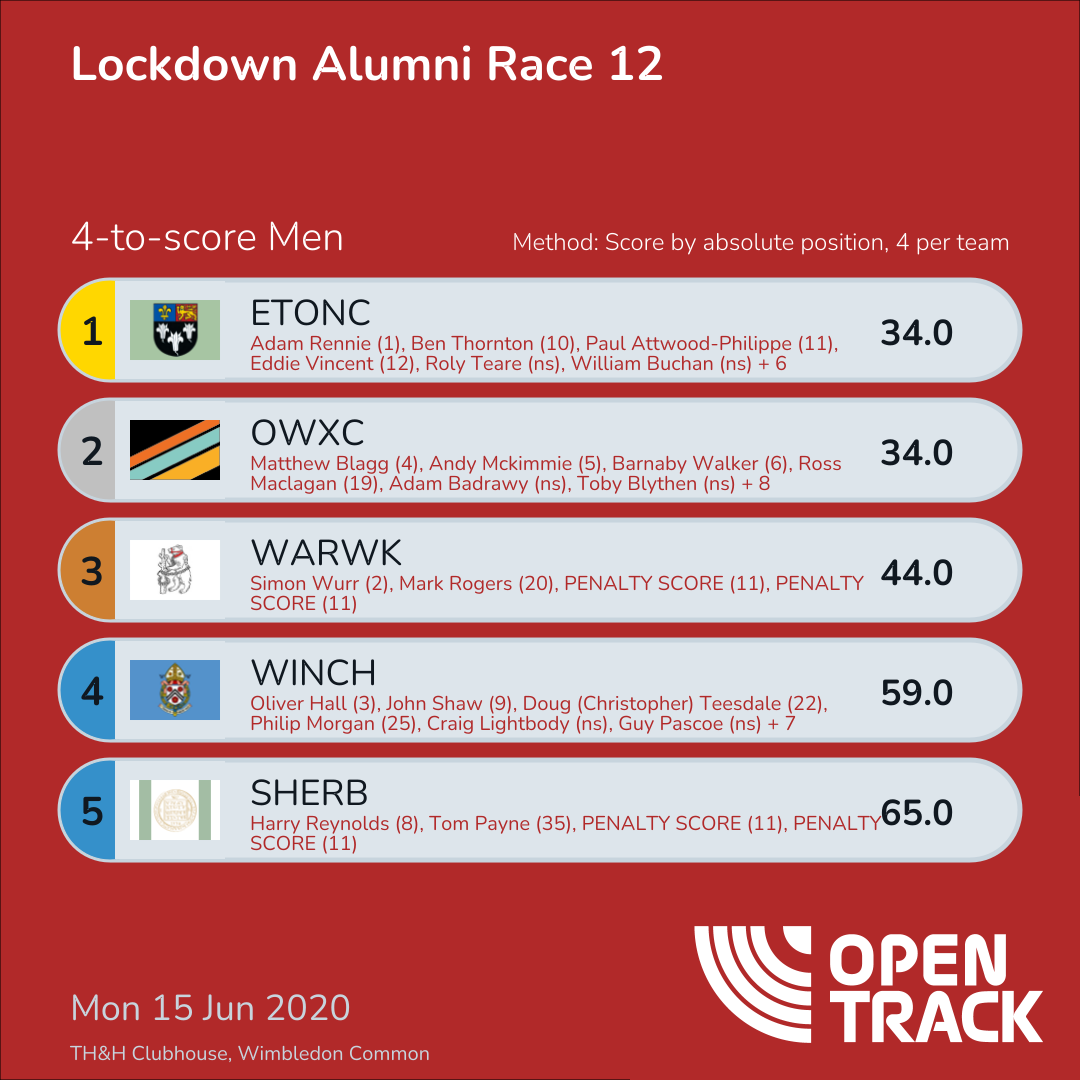 283.0 | 31: Harry Pugh (31), 61: Charlie Reid (61), 93: Julian Ellis (93), 98: Mike Wilson (98) |
