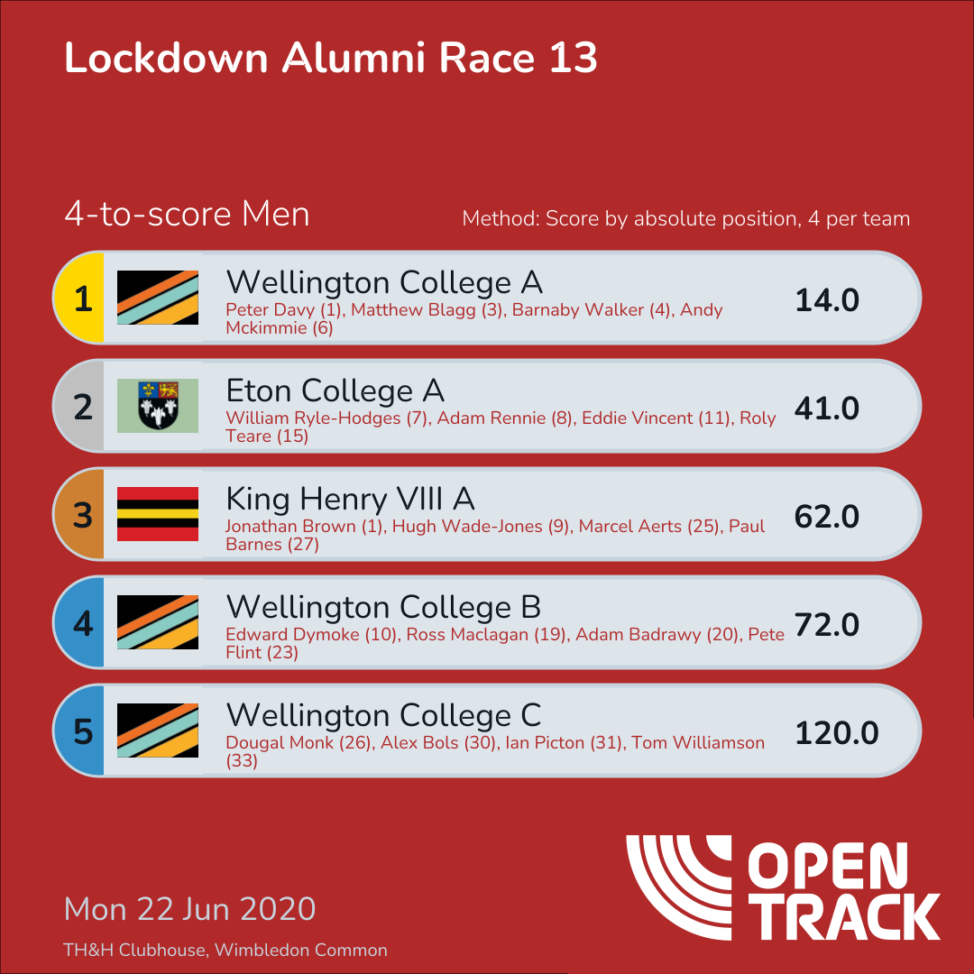 14.0 | 1: Peter Davy (1), 3: Matthew Blagg (3), 4: Barnaby Walker (4), 6: Andy Mckimmie (6) | |