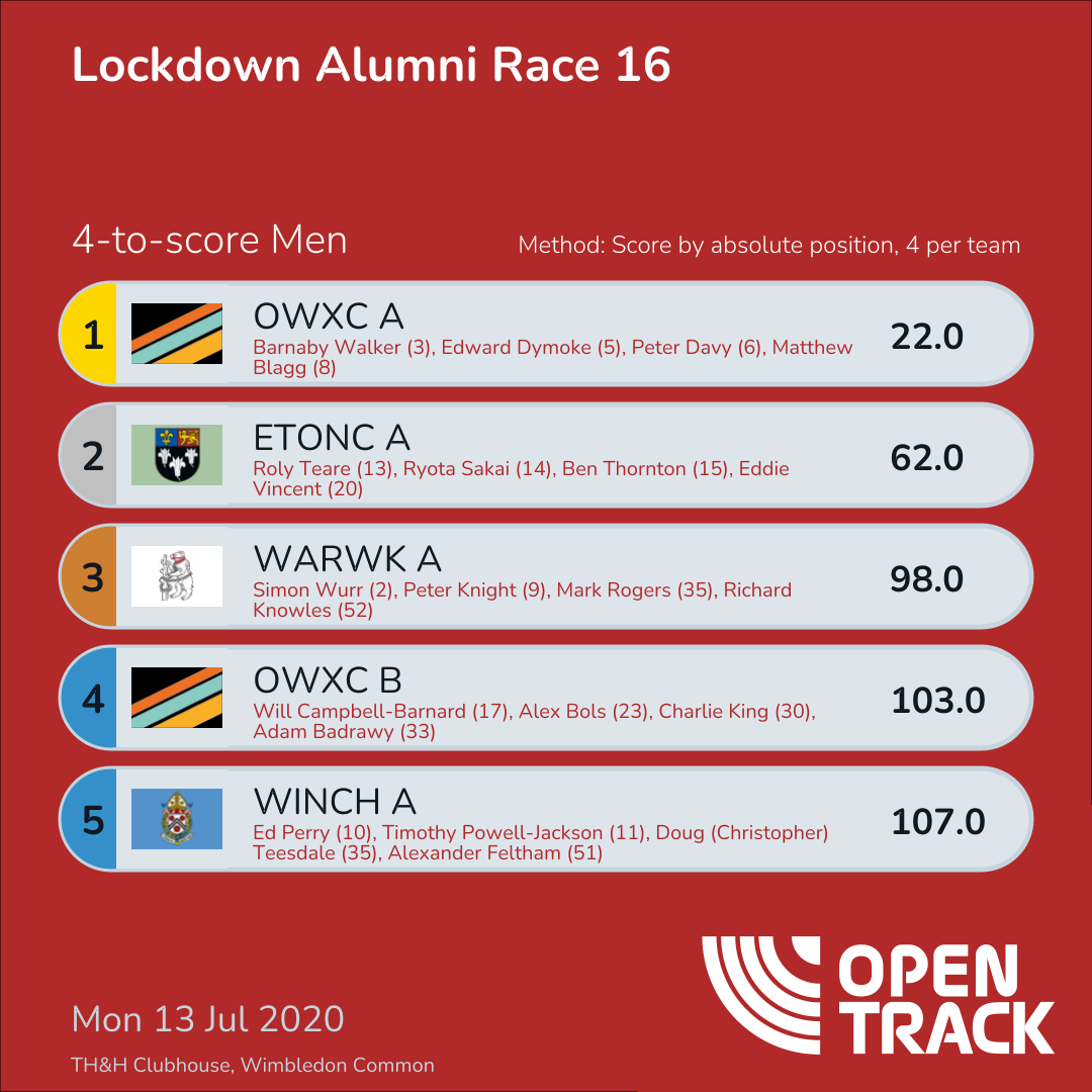 165.0 | 20: Felix Obholzer (20), 37: Rosslyn Simmonds (37), 46: Harry Pugh (46), 62: Edward Nurick (62) | |