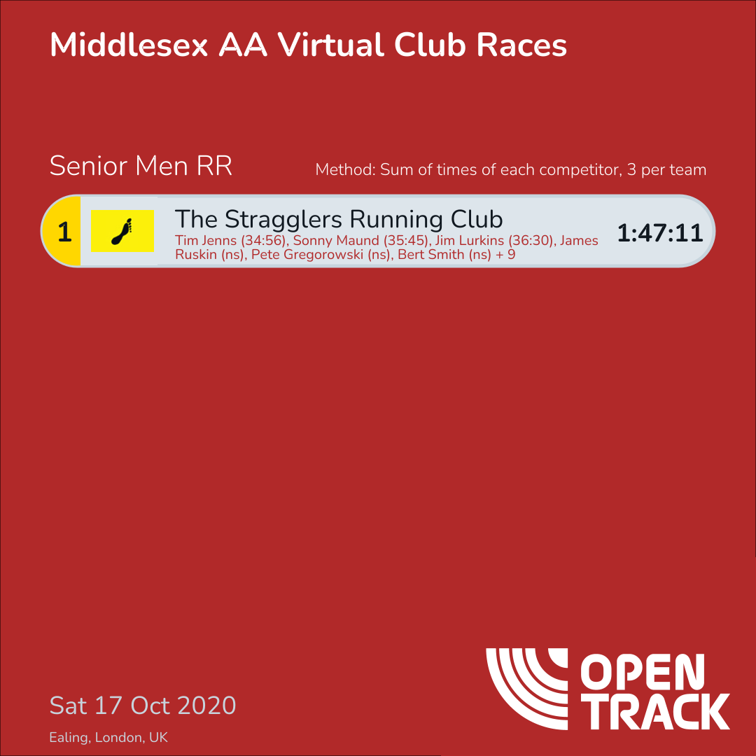 1:47:11 | 1: Tim Jenns (34:56), 2: Sonny Maund (35:45), 3: Jim Lurkins (36:30) |