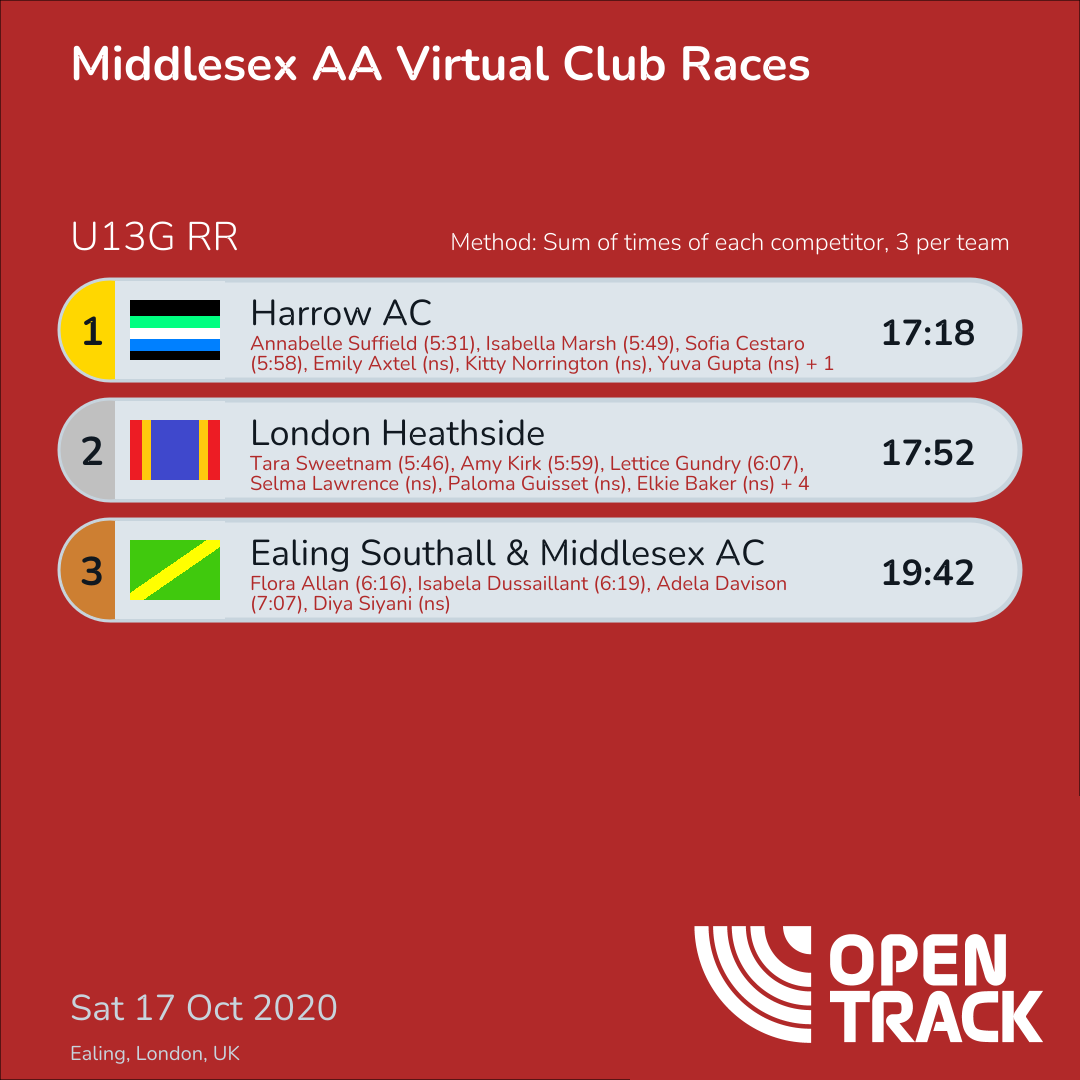 17:18 | 1: Annabelle Suffield (5:31), 4: Isabella Marsh (5:49), 6: Sofia Cestaro (5:58) | |