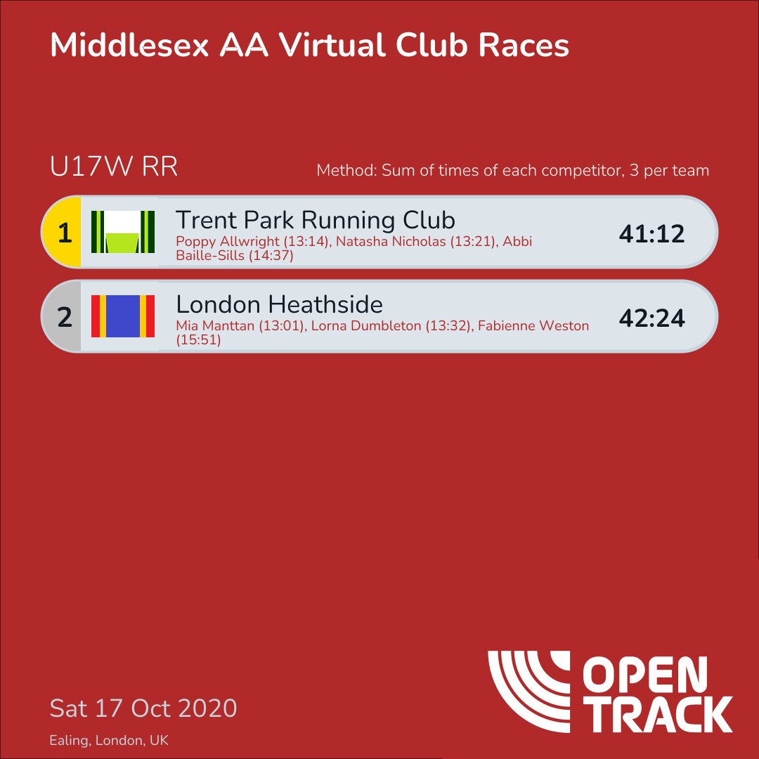 41:12 | 6: Poppy Allwright (13:14), 7: Natasha Nicholas (13:21), 11: Abbi Baille-Sills (14:37) | |