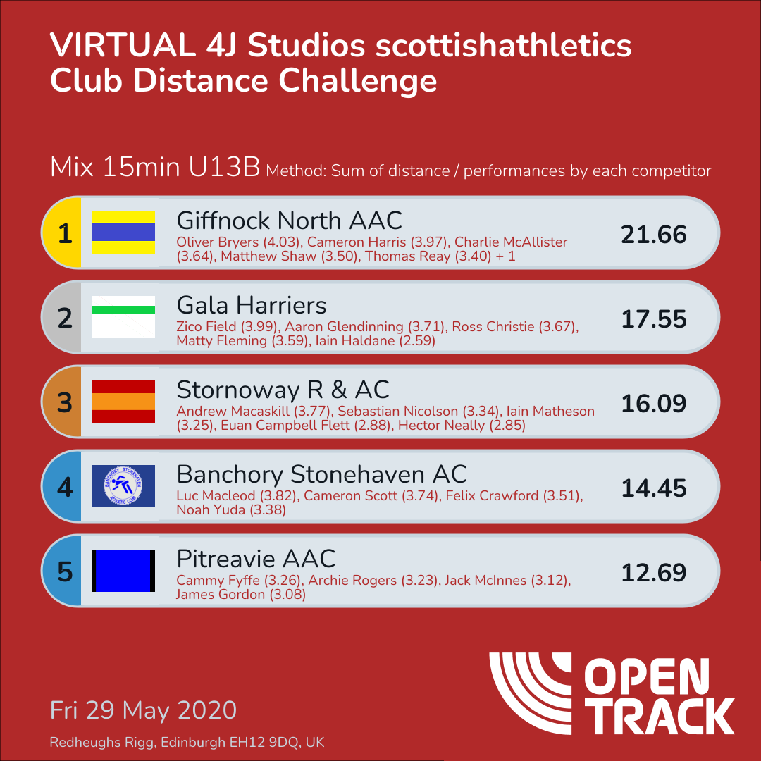 12.54 | 121: Ryan Kellock (3.85), 268: Daniel Simpson (3.39), 419: Ross Ferguson (2.70), 426: Alex Orr (2.60) | |