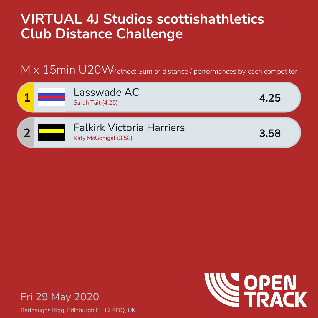 | 41 | 4.25 | Sarah Tait | U20W |