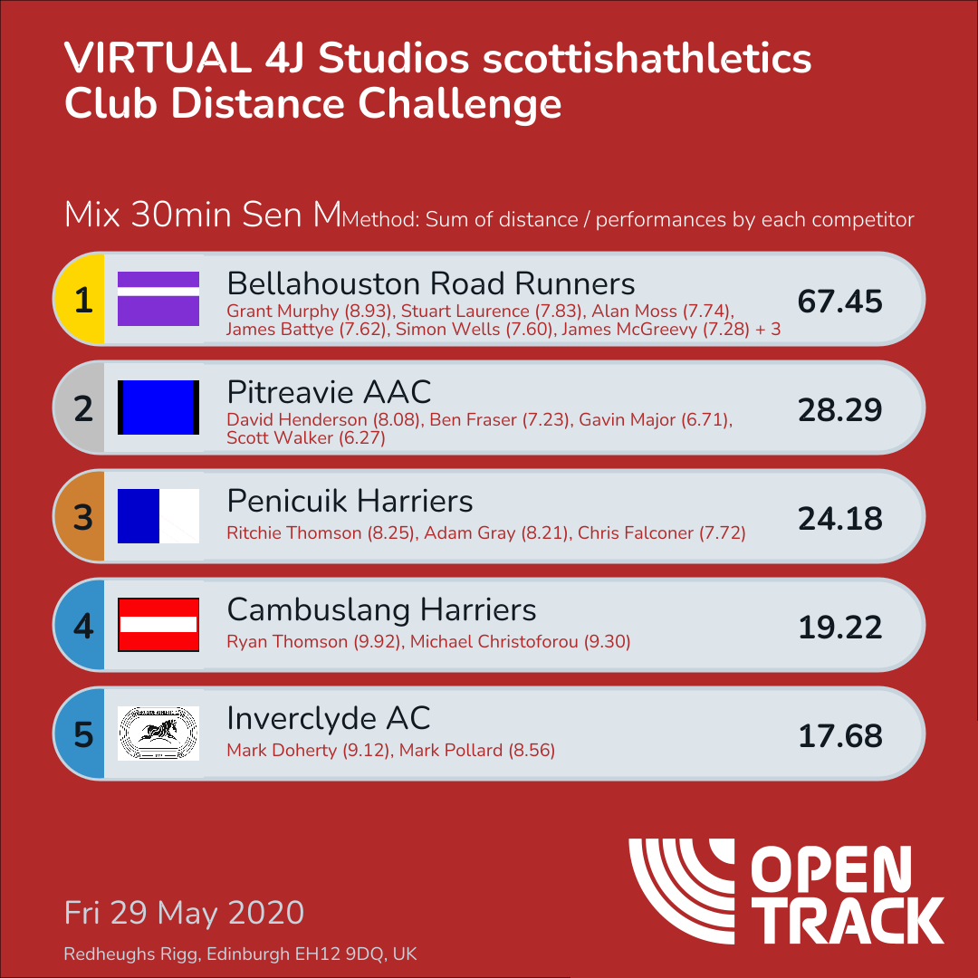 67.45 | 10: Grant Murphy (8.93), 58: Stuart Laurence (7.83), 67: Alan Moss (7.74), 77: James Battye (7.62), 79: Simon Wells (7.60), 103: James McGreevy (7.28), 107: Chris Allan (7.24), 165: Andrew Tomlinson (6.65), 184: Kenny Angove (6.56) | |
