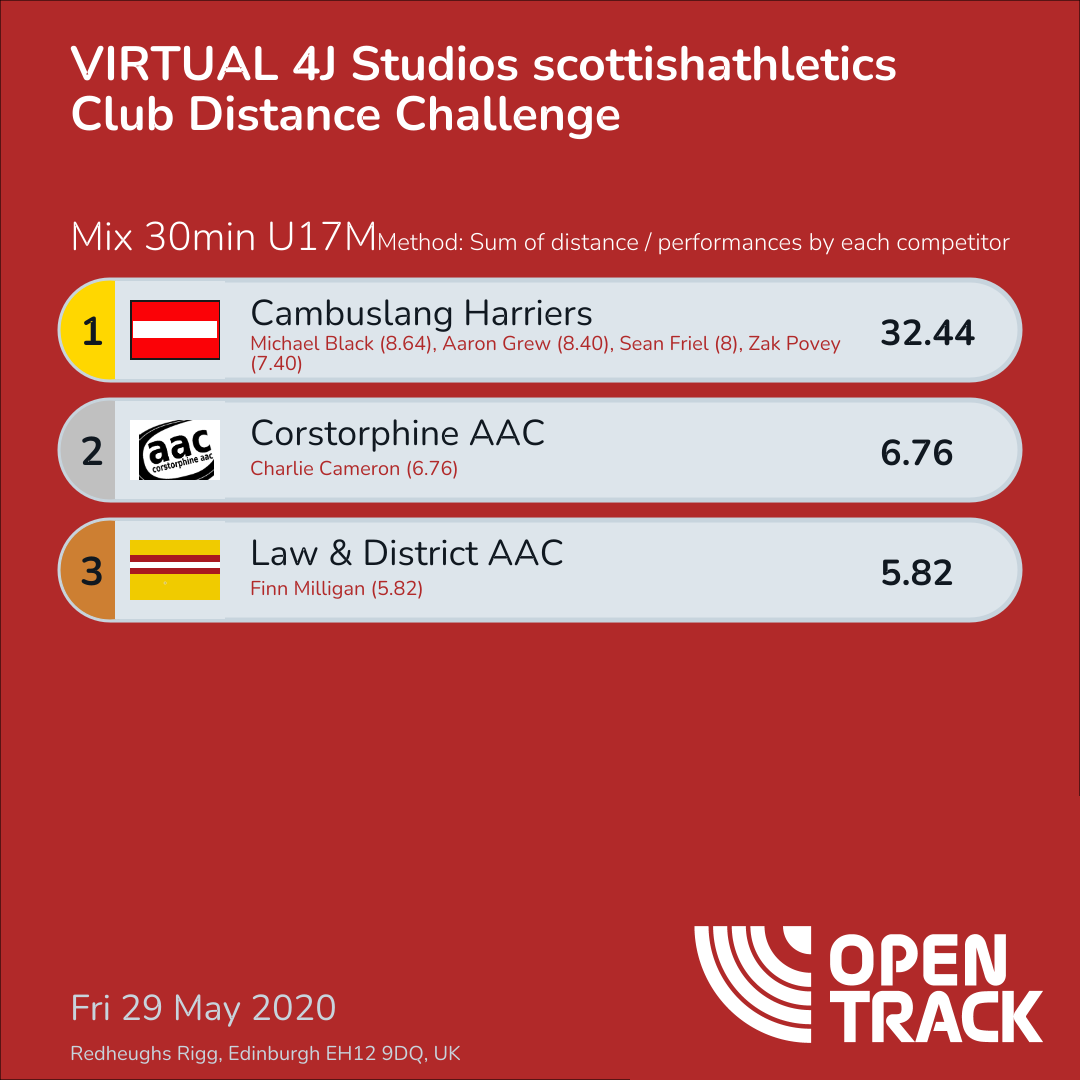 32.44 | 16: Michael Black (8.64), 23: Aaron Grew (8.40), 47: Sean Friel (8), 90: Zak Povey (7.40) | |