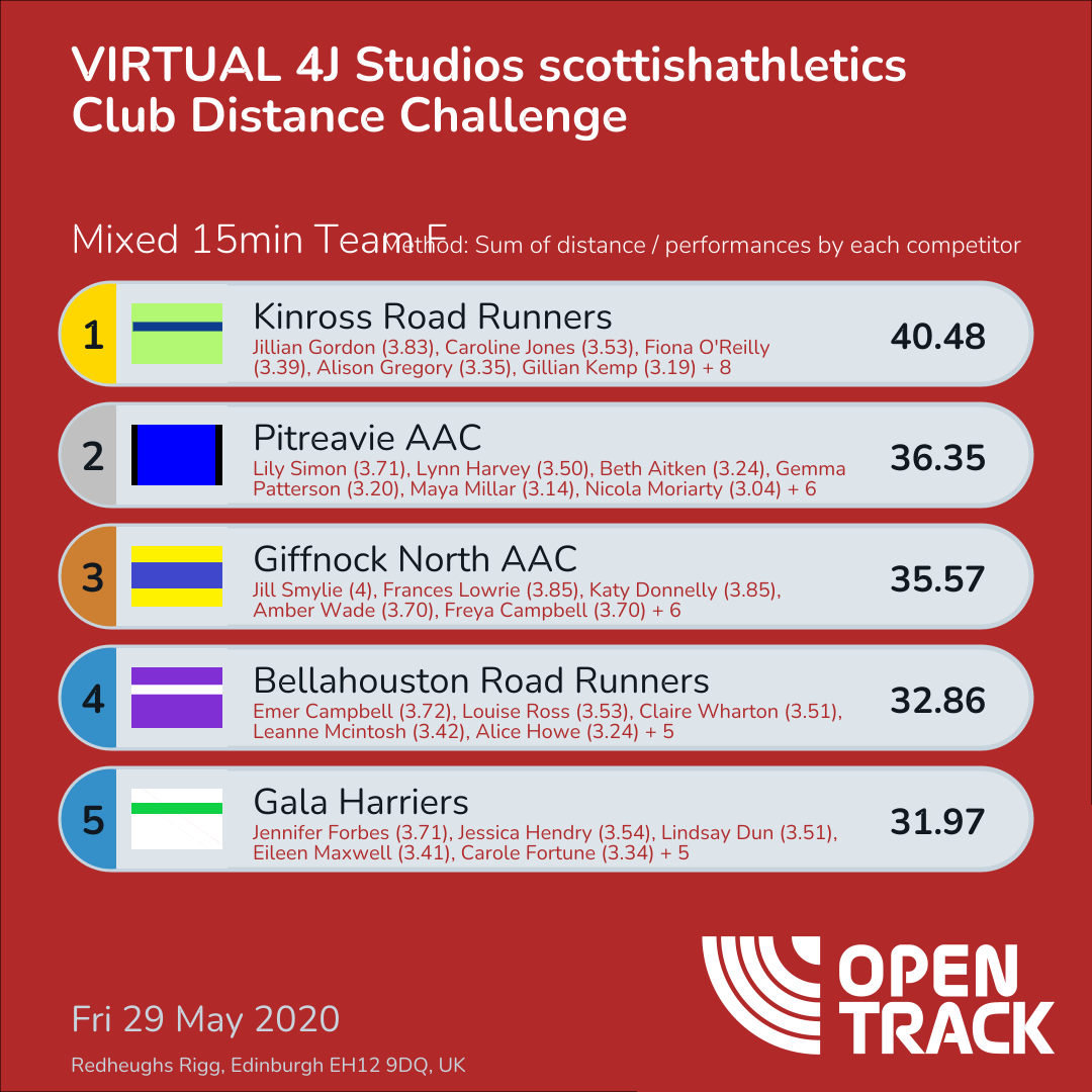 17.39 | 150: Rachel Murray (3.75), 158: Francesca Greenstock (3.73), 260: Emily Murray (3.41), 320: Lorraine Morrison (3.26), 325: Holly Maciver (3.24) | |