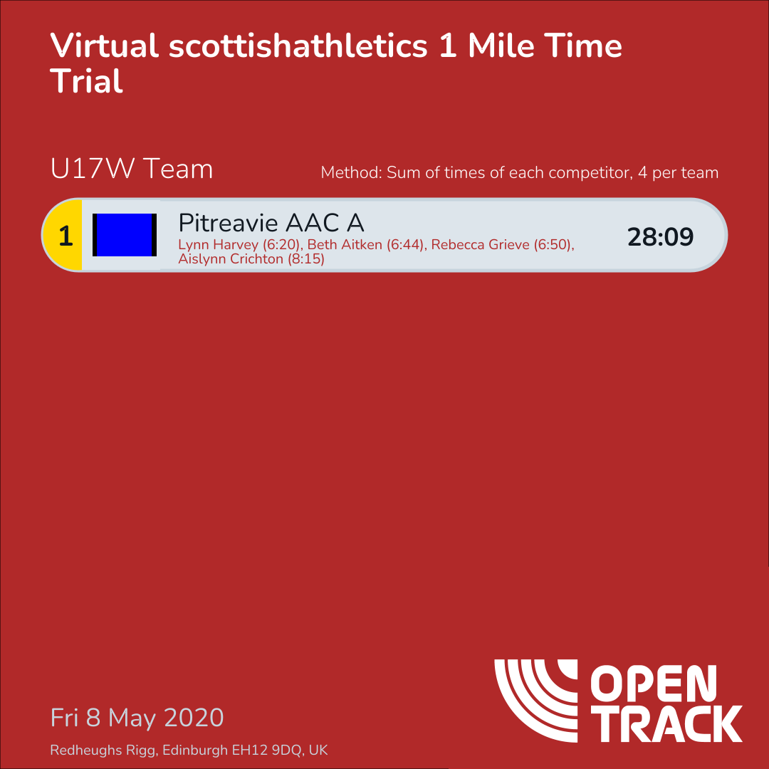 28:09 | 678: Lynn Harvey (6:20), 846: Beth Aitken (6:44), 886: Rebecca Grieve (6:50), 1190: Aislynn Crichton (8:15) |