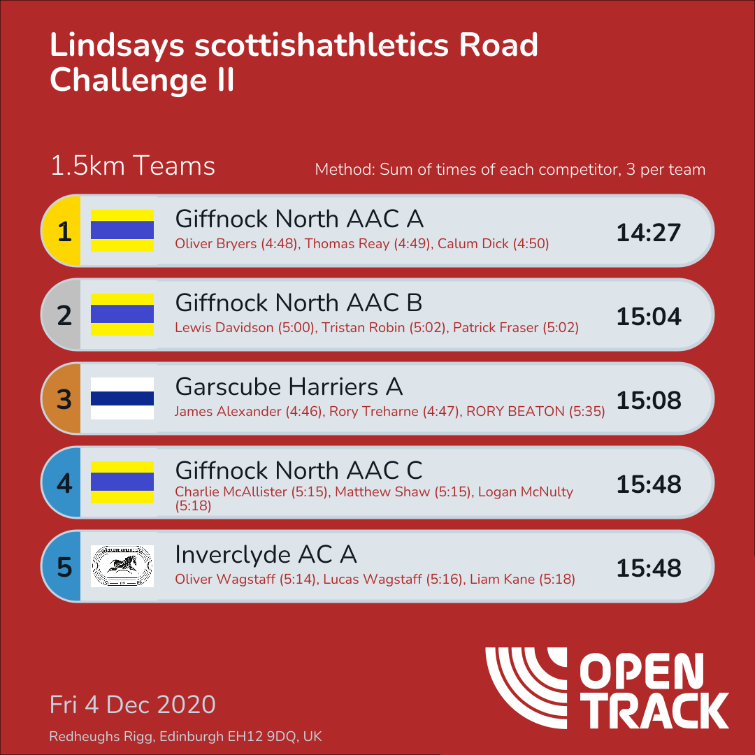 16:16 | 26: Alexander Thomson (5:23), 26: Finlay Laskey (5:23), 36: Cameron Mitchell (5:30) | |
