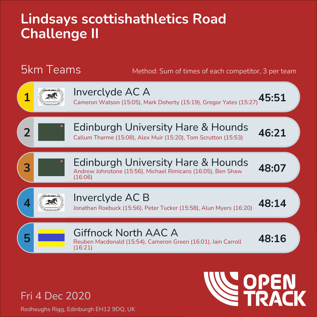 46:21 | 2: Callum Tharme (15:08), 5: Alex Muir (15:20), 13: Tom Scrutton (15:53) | |