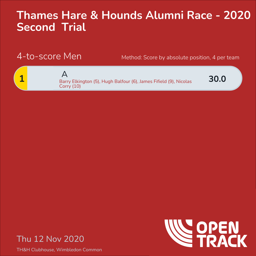 | 1 | -A | 30.0 | 5: Barry Elkington (5), 6: Hugh Balfour (6), 9: James Fifield (9), 10: Nicolas Corry (10) |