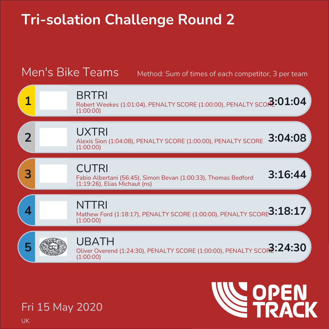 3:28:05 | 1: Ben Kent (54:45), 49: James Ball (1:33:20), 3600: PENALTY SCORE (1:00:00) | |