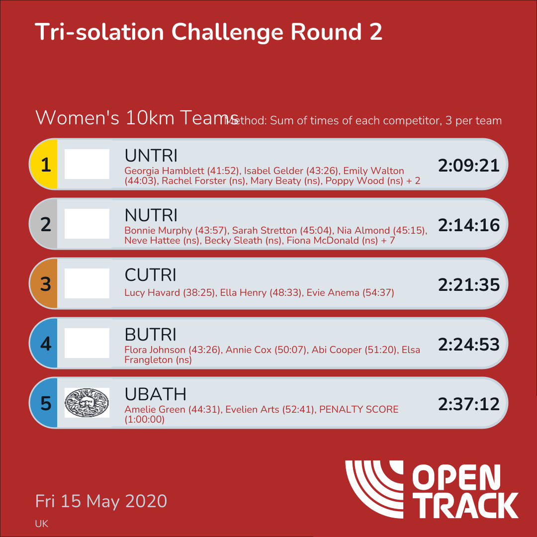 2:21:35 | 4: Lucy Havard (38:25), 38: Ella Henry (48:33), 56: Evie Anema (54:37) | |
