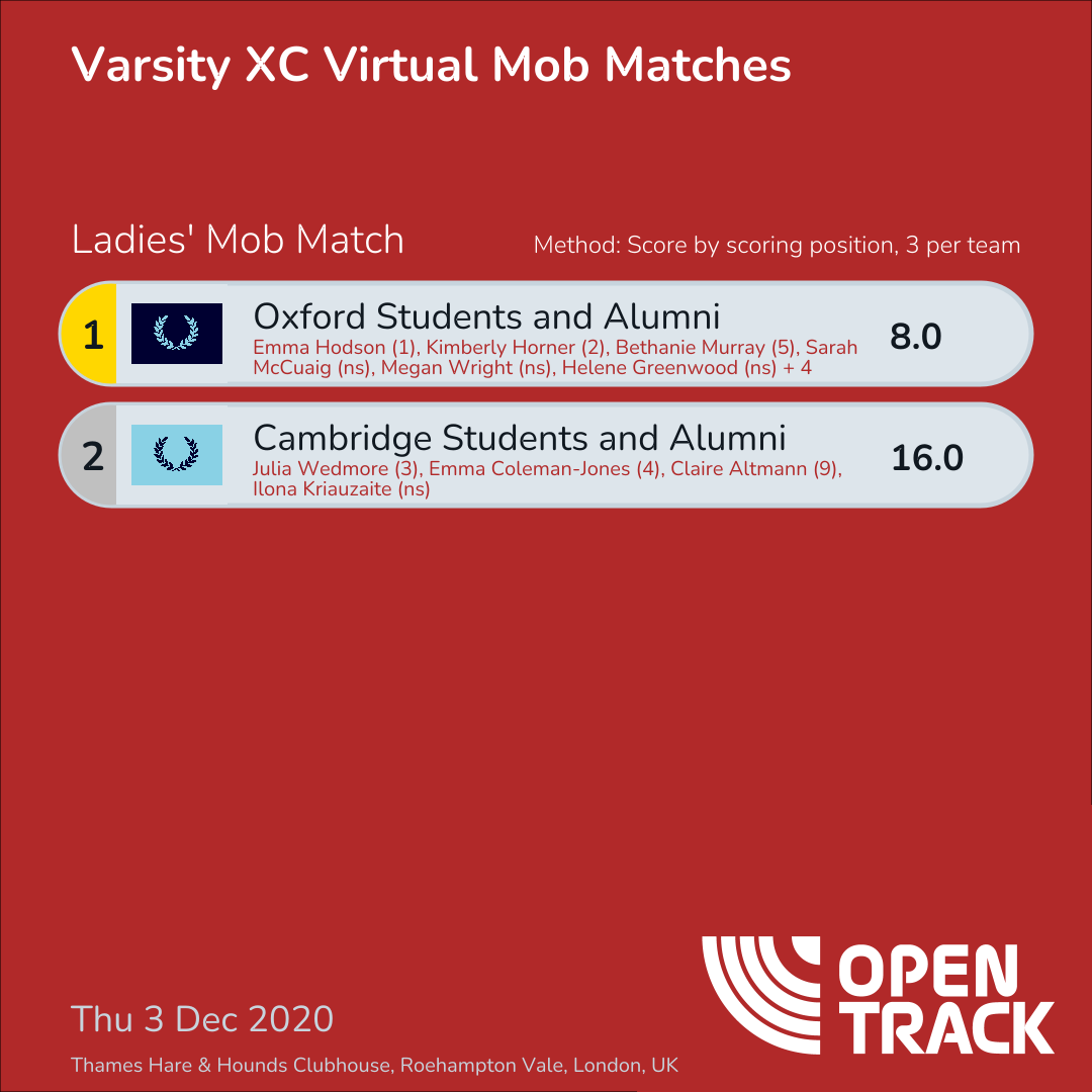 16.0 | 19: Julia Wedmore (3), 20: Emma Coleman-Jones (4), 27: Claire Altmann (9) |