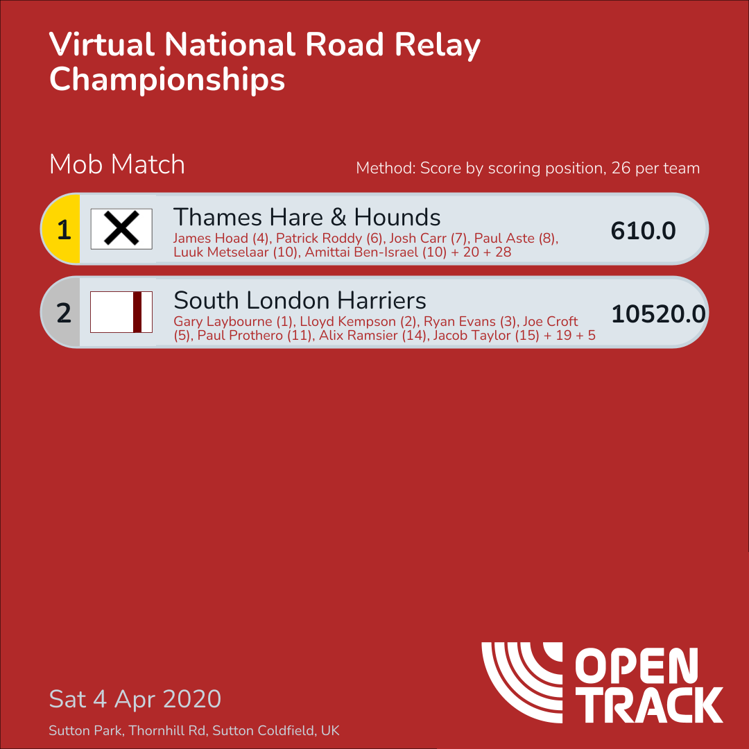 610.0 | 155: James Hoad (4), 183: Patrick Roddy (6), 193: Josh Carr (7), 220: Paul Aste (8), 264: Luuk Metselaar (10), 264: Amittai Ben-Israel (10), 345: James Bartram (12), 376: James Mcmullan (13), 471: Richard Kowenicki (16), 623: Oliver Garner (19), 652: Charlie Stoneham (21), 704: Phillip Tedd (22), 741: Eliot Nevill (24), 810: Tom Goulding (26), 844: Thomas Greenwood (27), 851: Matt Jones (28), 859: Simon Wurr (29), 973: Nik Pugh (30), 1021: Nic Gould (31), 1043: Richard Ollington (32), 1059: Ben Reynolds (33), 1068: Simon Molden (34), 1286: Andy Weir (39), 1359: Nick Altmann (42), 1408: Mark Chatwin (43), 1510: Edmund Gazeley (44) | |