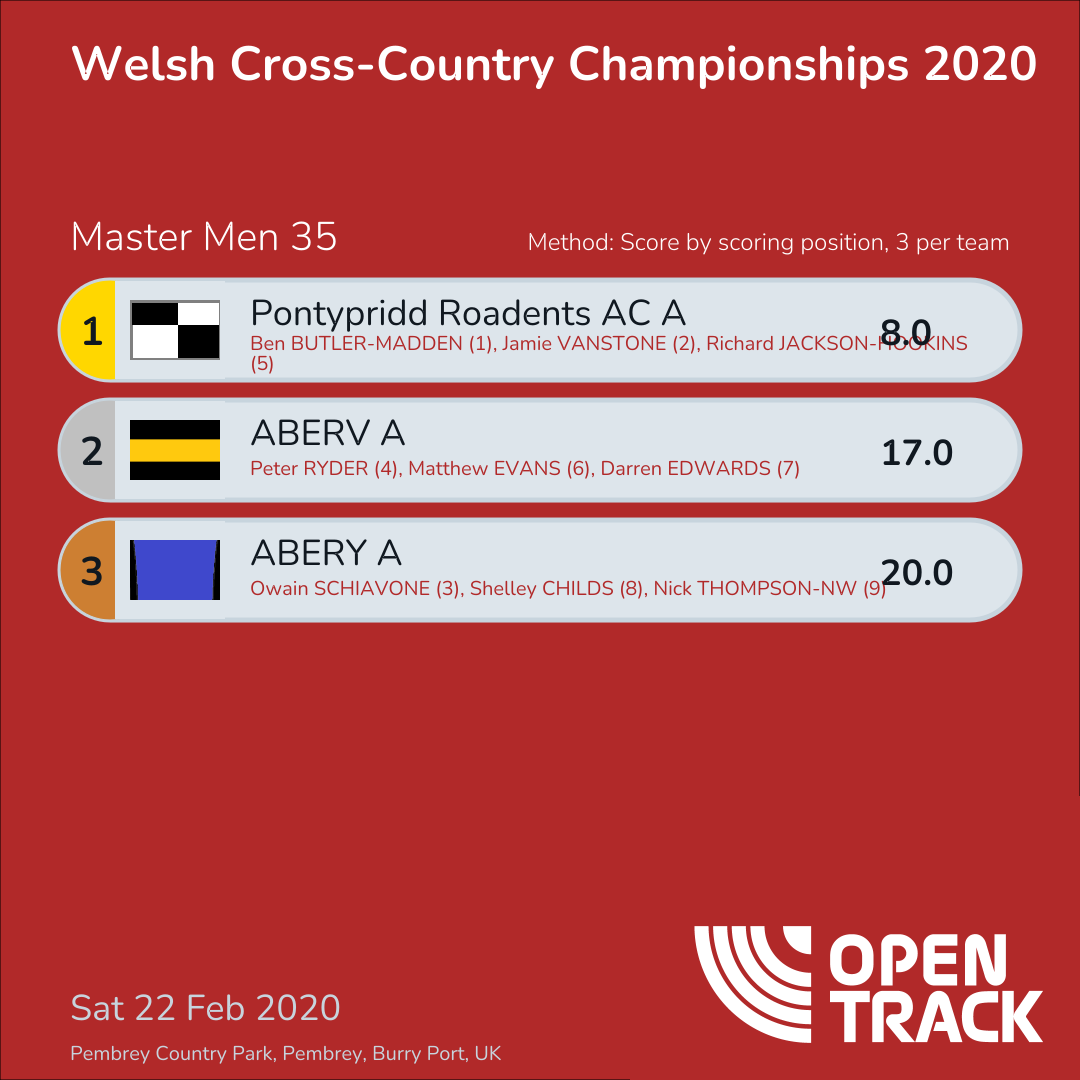 20.0 | 27: Owain SCHIAVONE (3), 94: Shelley CHILDS (8), 123: Nick THOMPSON-NW (9) |