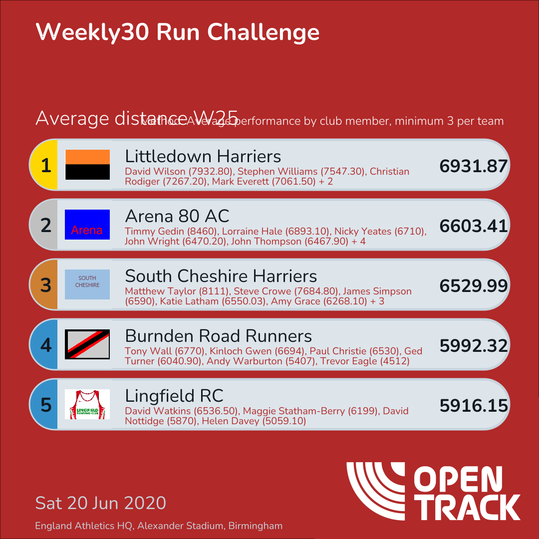5295.41 | 4: Sam Moran (7792.50), 20: Laura Hesketh (7097), 25: Anthony Hepple (6710), 34: Mark Botterill (6549), 63: Malcolm Teale (6132.50), 73: Alex Walton (6000.10), 75: Joanne McDougall (5914.10), 76: Lee Bibby (5906), 79: Sarah Pickerill (5858.01), 80: Ali Cross (5826.10), 81: Robert Scott-Norton (5826), 93: Ellie Ireland (5632.71), 94: Lisa Lowery (5632.70), 126: Jill Watson (5133.81), 131: Patricia Kearsey (5053), 136: Dianne Burnett (5005), 142: Christine Webster (4995.80), 167: Helen Hible (4490), 189: Joanne Gorman (4047), 194: Emma Kavanagh (4000), 200: Jayne Telford (3721.20), 226: Jo Foster (2380), 227: Tara Hall (2092) | |