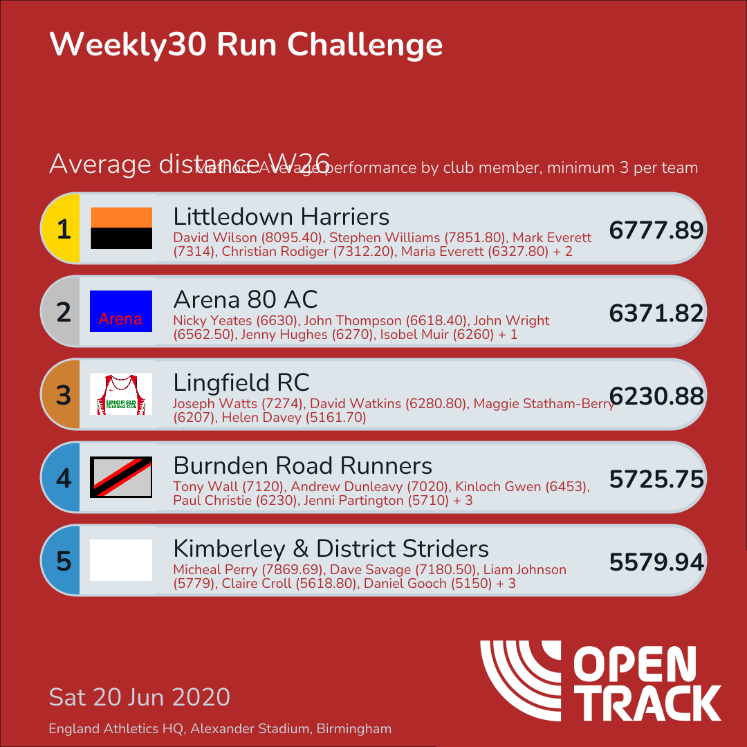 6230.88 | 13: Joseph Watts (7274), 39: David Watkins (6280.80), 45: Maggie Statham-Berry (6207), 92: Helen Davey (5161.70) | |