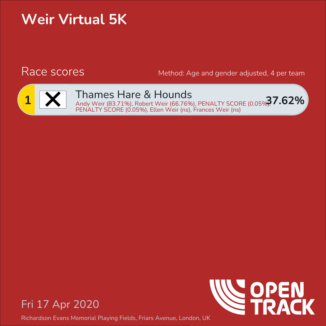Method: Age and gender adjusted, 4 per team