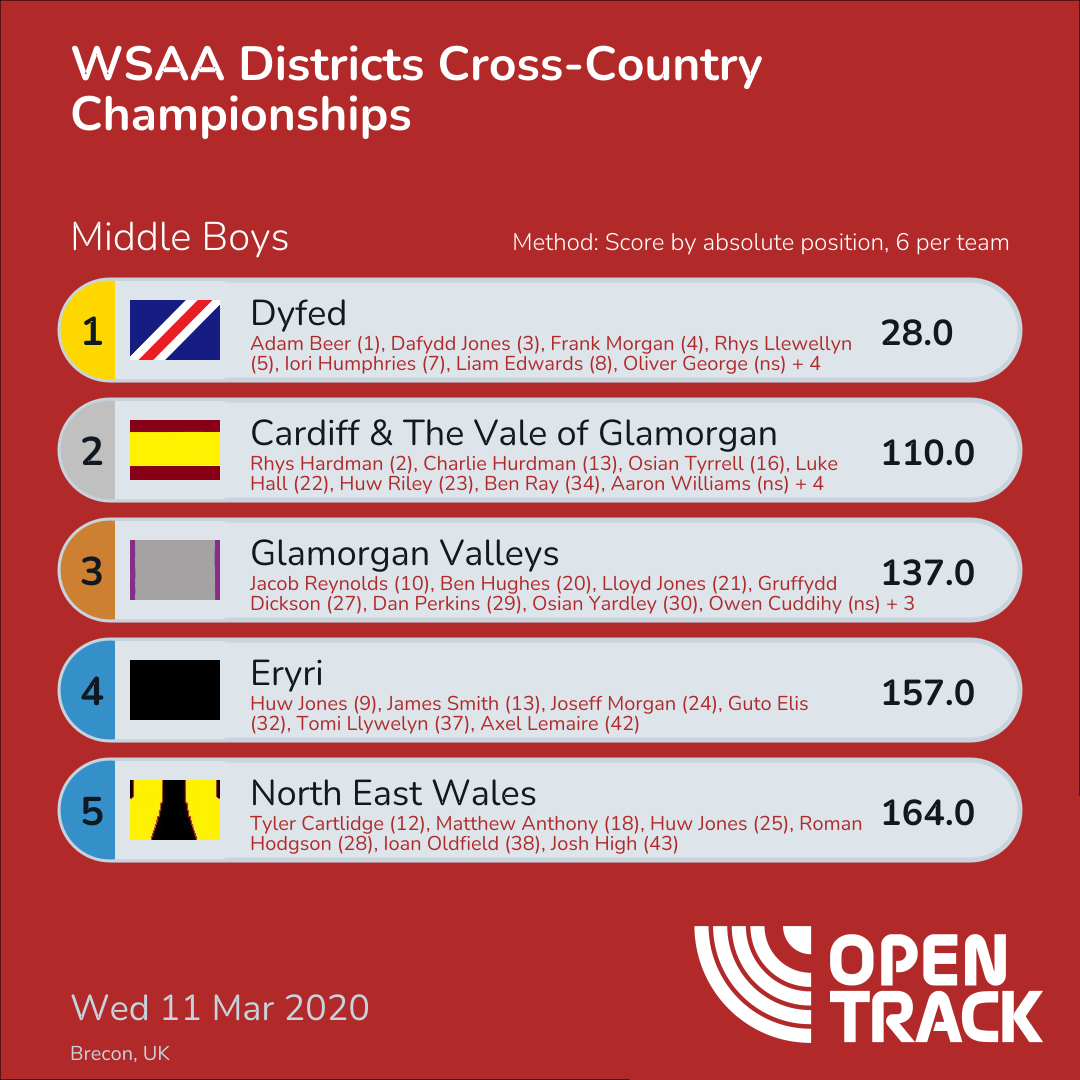 | 3 | GLA | 137.0 | 10: Jacob Reynolds (10), 20: Ben Hughes (20), 21: Lloyd Jones (21), 27: Gruffydd Dickson (27), 29: Dan Perkins (29), 30: Osian Yardley (30) | |