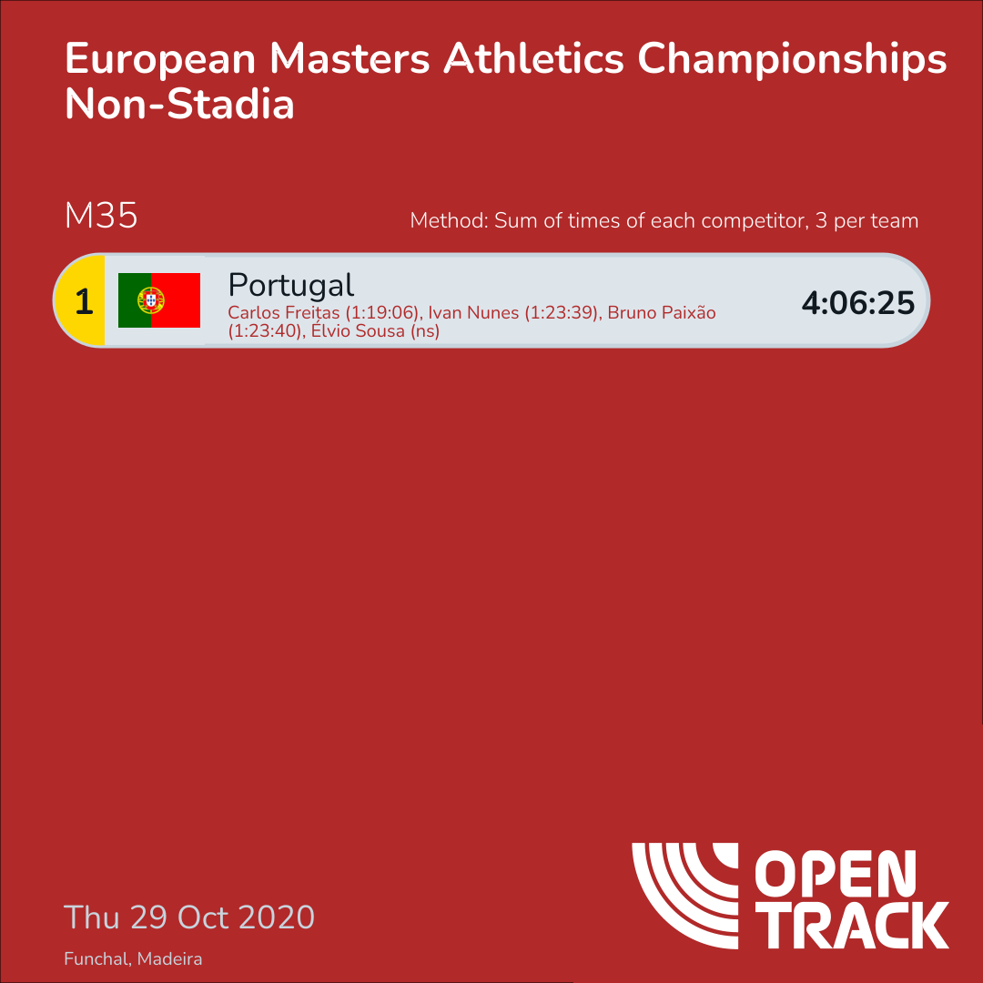 4:06:25 | 12: Carlos Freitas (1:19:06), 24: Ivan Nunes (1:23:39), 25: Bruno Paixão (1:23:40) |