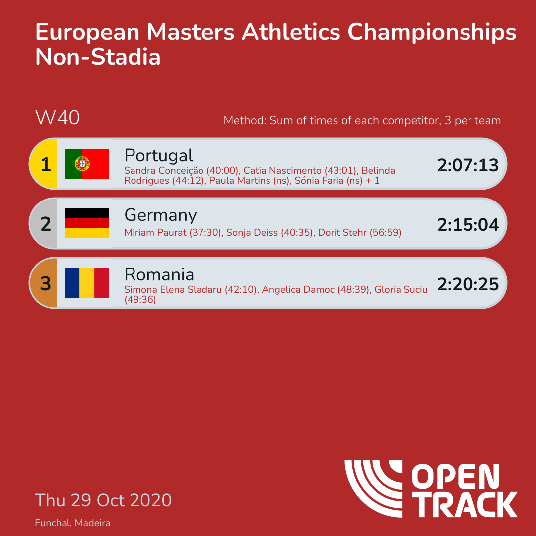 2:07:13 | 61: Sandra Conceição (40:00), 87: Catia Nascimento (43:01), 94: Belinda Rodrigues (44:12) | |