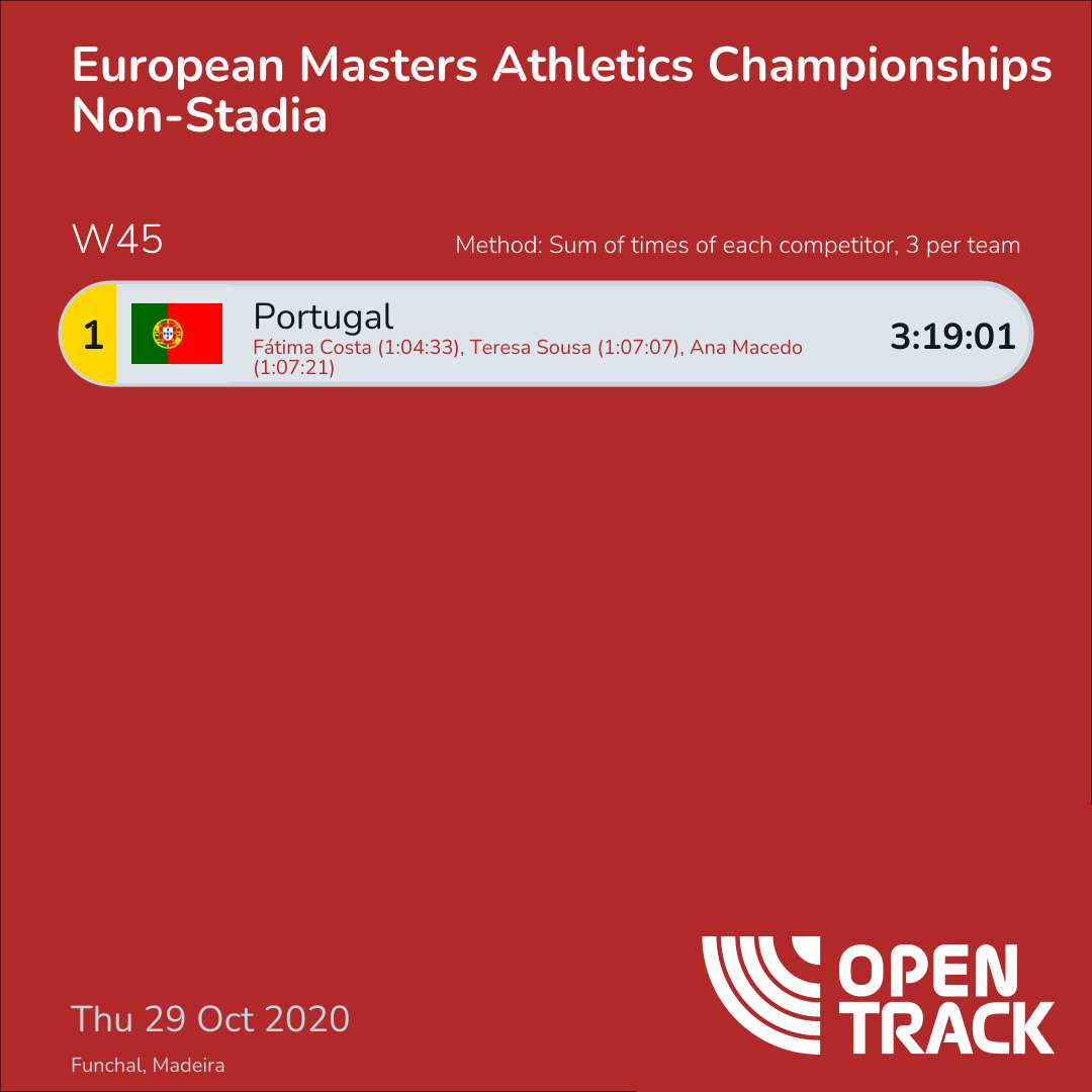 3:19:01 | 30: Fátima Costa (1:04:33), 35: Teresa Sousa (1:07:07), 36: Ana Macedo (1:07:21) |
