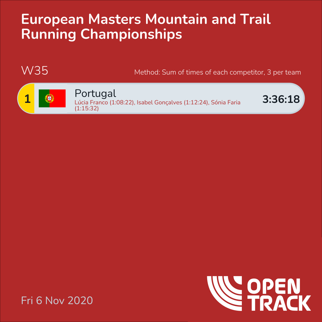 3:36:18 | 5: Lúcia Franco (1:08:22), 9: Isabel Gonçalves (1:12:24), 11: Sónia Faria (1:15:32) |